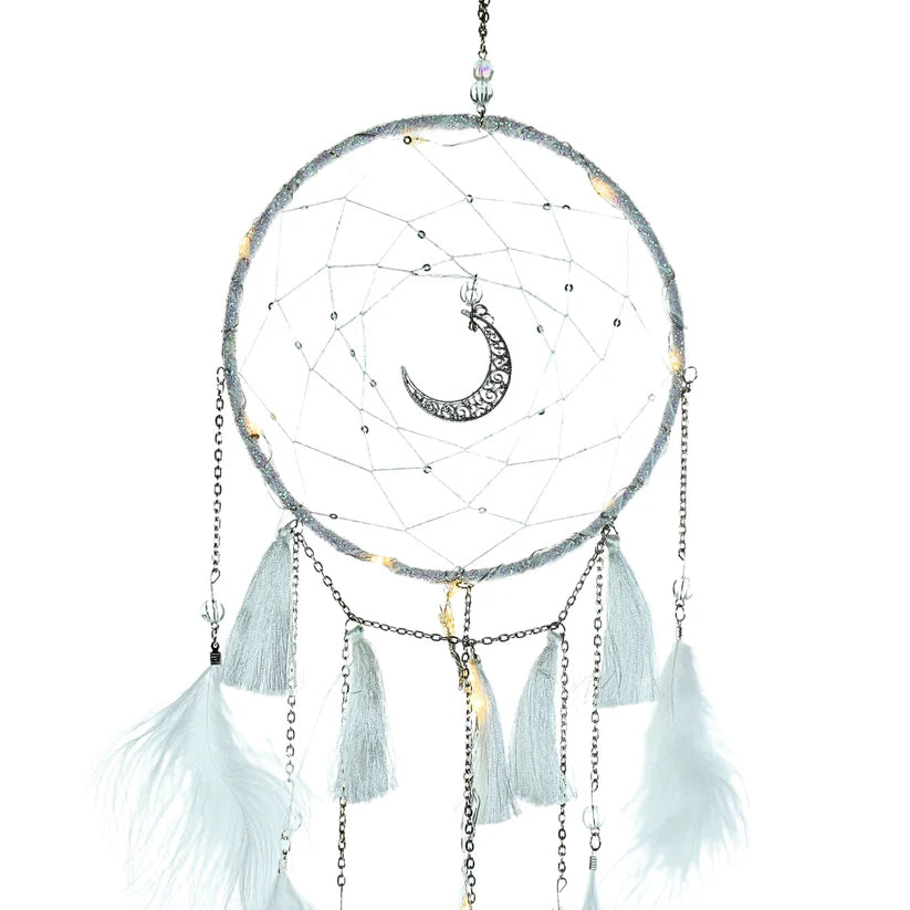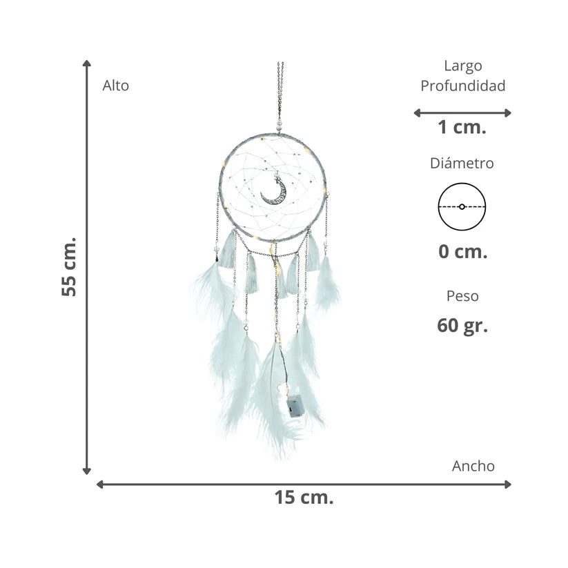Este atrapa sueños LED es una pieza decorativa inspirada en las tradiciones nativas, ideal para embellecer espacios como dormitorios, salas de estar o cualquier rincón especial destinado al descanso. Decorado con plumas y cadenas metálicas, evoca el estilo de los atrapasueños nativos americanos, aportando un toque mágico y distintivo a tus ambientes.