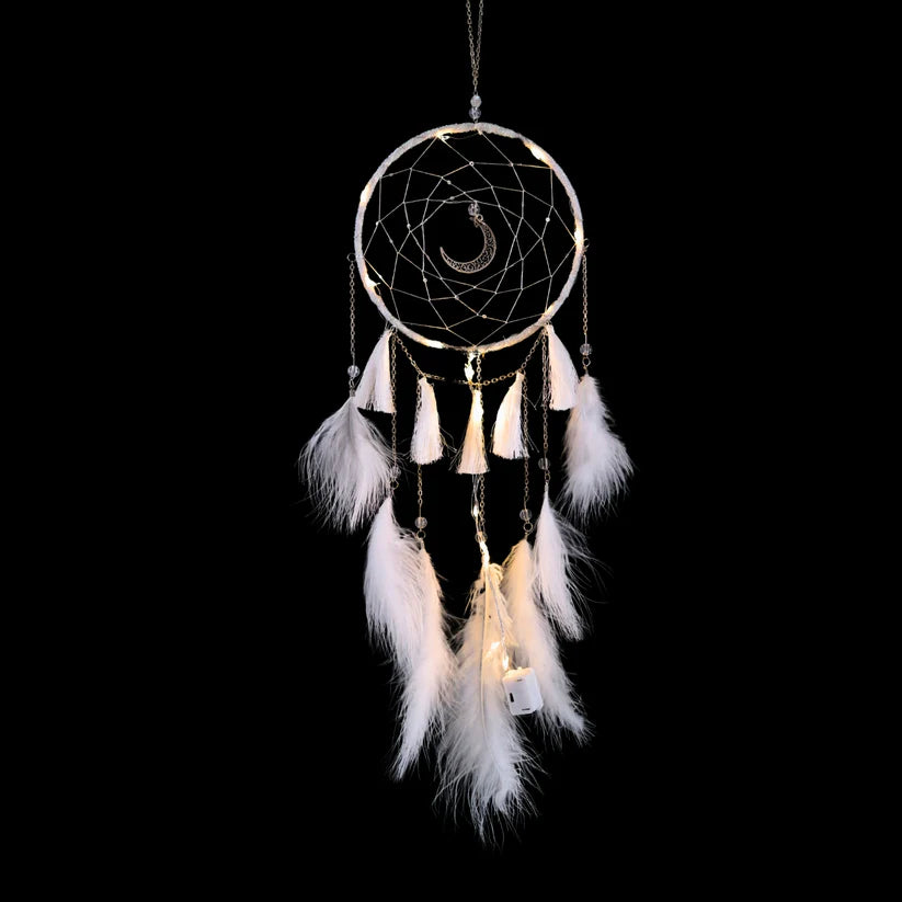 Atrapa Sueños LED Decoración Colgante con Plumas Blanco